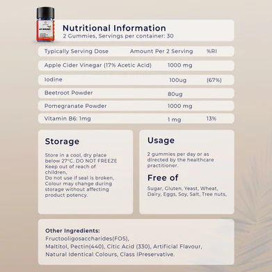 These gummies are a food supplement that contains 17% acetic acid, each bottle contains 30 gummies.