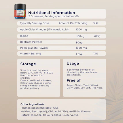 These gummies are a food supplement that contains 17% acetic acid, each bottle contains 60 gummies.